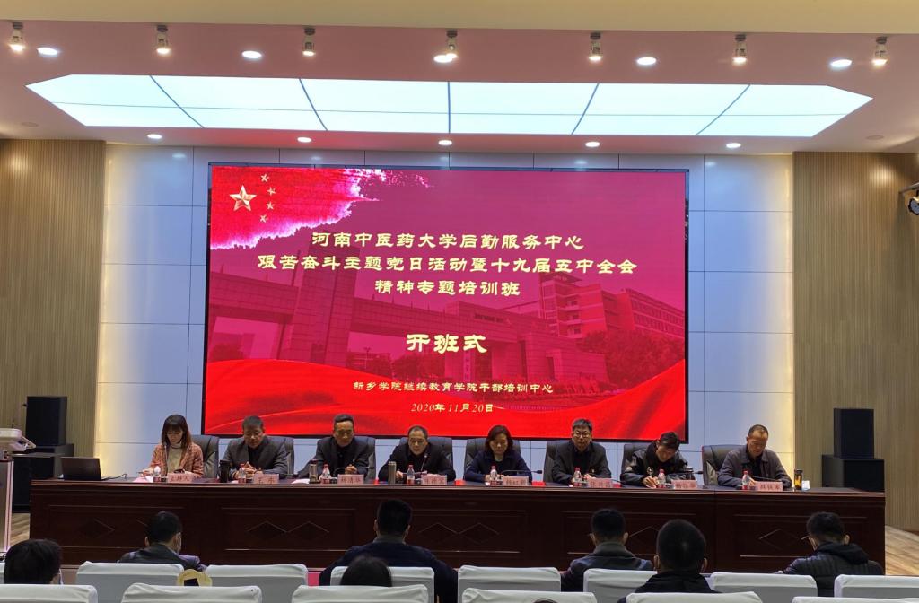 11月20日上午,由我校承办的“河南中医药大学后勤服务中心艰苦奋斗主题党日活动暨十九届五中全会精神专题培训”在威廉官网中国附属中学报告厅举行。河南中医药大学后勤服务中心党总支书记陈德宝、副书记杨清华,我校williamhill中文党总支书记韩虹新、院长张兴昌出席开班仪式。开班式由williamhill中文副院长田贝贝主持,河南中医药大学30余名教师参加。