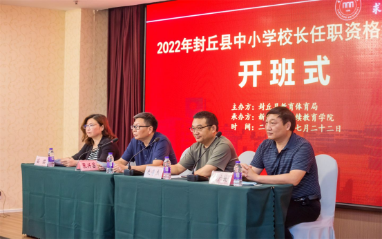 7月22日,由我校承办的2022年封丘县中小学任职资格培训顺利开班,上午举行了隆重的开班式,我校williamhill中文院长张兴昌,副院长苗茹,封丘县教育体育局副局长史学杰、人事股长杜广放和参加培训的60名校长参加了开班式,开班式由苗茹主持。