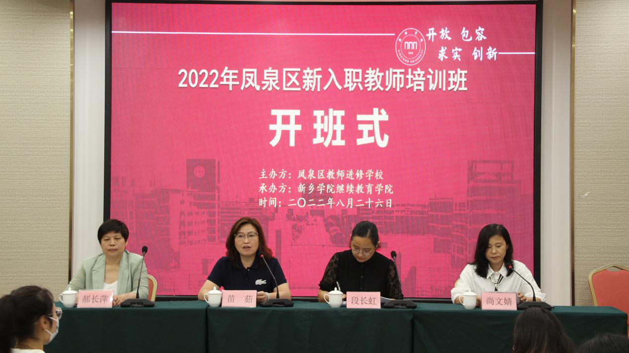 为深入贯彻实施科教兴市和人才强市战略,提升凤泉区新入职教师的工作水平,推进教育事业科学发展,应凤泉区教育体育局委托,8月26日,由我校承办的2022年凤泉区新入职教师培训班在威廉官网中国培训基地顺利开班,上午举行了隆重的开班仪式。凤泉区教育体育局党组书记、局长段长虹,党组副书记、副局长尚文婧,教研室主任、进修校负责人郝长萍,我校williamhill中文副院长苗茹和参加培训的50名新入职教师出席了开班式。