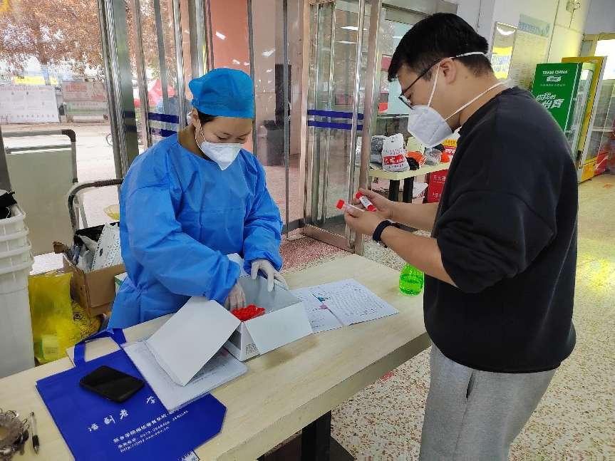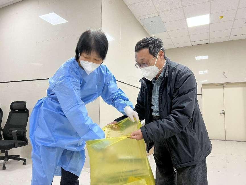 坚守岗位,任劳任怨,“疫”无反顾做好保障工作。面对复杂的疫情、繁重的准备工作,学院培训科副科长李舒楠、教师戈新杰、张孝梅不畏辛苦、团结协作、迎难而上,扛起了宣传报道及每天全校各核酸检测点的采样、防护物资分发的工作,奔波于全校各个核酸检测点,记录战疫事迹,做好全媒体宣传。“防护服、防护面罩、N95口罩、头套、手套……这个齐了!”“采样码、封箱码都分好了吗?”“这个物资包还少4个面罩!”每天弯腰工作、细心核实直至当天核酸检测工作结束,却没有任何怨言,以高度的责任感和大局意识,舍小家顾大家,把师生健康安全放在第一位,在这场没有硝烟的战场上充分展现了“继教人”的担当。