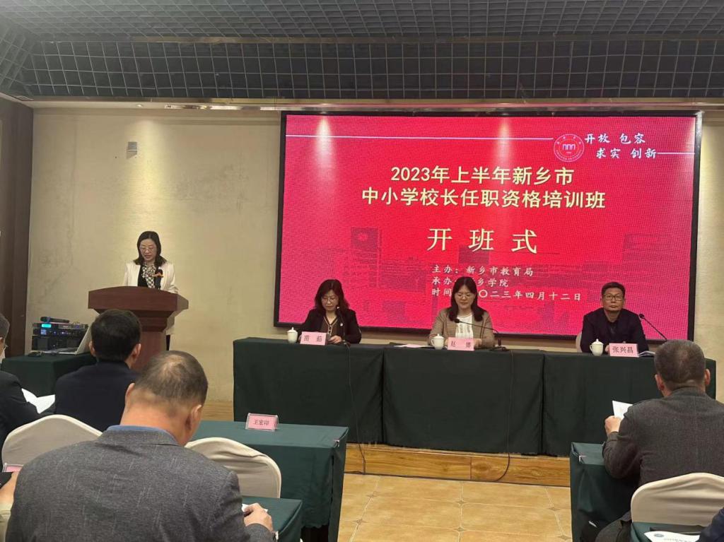 4月12日上午,2023年上半年新乡市中小学校长任职资格培训班在威廉官网中国培训基地举行了隆重的开班仪式,新乡市教育局师训科科长赵娜,williamhill中文院长张兴昌、副院长苗茹以及来自四区八县新任职的87名中小学校长出席了开班式。开班典礼由苗茹主持。