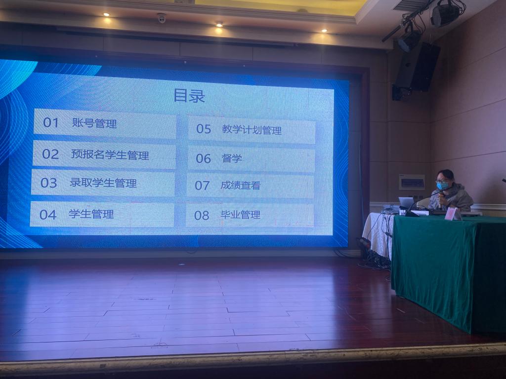 williamhill中文相关工作人员分别就继续教育教学管理、考试管理和学籍管理进行了培训,北京超星公司代表就威廉官网中国高等学历继续教育一体化综合服务平台的操作和使用做了专题培训。