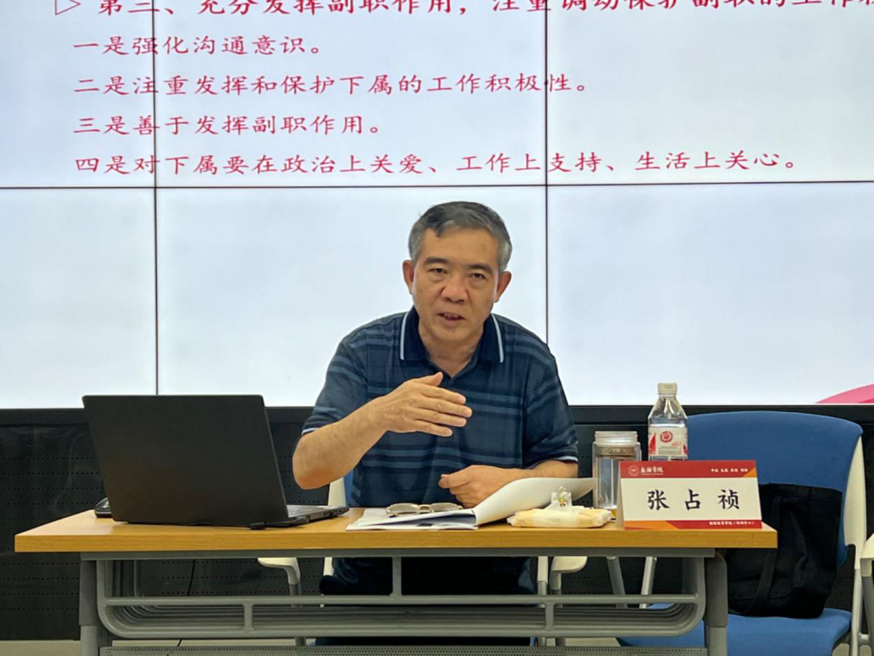 近日,新乡市2023年度军队转业干部培训班在我校举办,为深入学习宣传贯彻党的二十大精神,贯彻落实习近平总书记关于退役军人工作重要论述,做好新时代退役军人思想政治工作,8月18日下午,副校长张占祯以“浅谈干部队伍建设”为题,结合自身学习体会、工作实际和切身经历,为军转干部们带来一场生动的专题讲座。