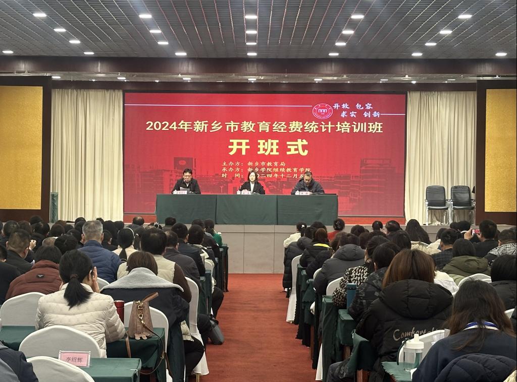 为做好2024年新乡市教育经费统计工作,2024年11月5日,由新乡市教育局主办、williamhill中文(培训中心)承办的2024年新乡市教育经费统计人员培训班在辉县市百泉国际大酒店顺利开班。新乡市财政局教科文科科长郎磊同志,新乡市教育局财务科科长张锐同志,williamhill中文(培训中心)院长田大治出席开班式,各县(市、区)教育局、财政局及局属各单位共计200名教育经费统计工作人员参加培训。
