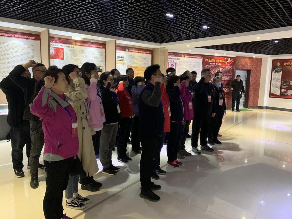 在南太行轿顶山红色抗战实物展览馆前,由张宝林书记领誓,全体党员重温入党誓词,随后大家参观学习了辉县人民抗日解放战争简史、中共辉县党组织的建立及革命活动的开展、各阶层人民奋起抗日的情况、中共党组织的发展、辉县抗日根据地的开辟、解放辉县、榜样的力量---铭记老兵等23个板块内容,感受了南太行人民艰难抗战,最终取得胜利的奋斗历程。下午登九品十八节,学习体会了古代廉政教育,登山俯瞰了郭亮村“十三壮士”修建的绝壁长廊,眺望了侯兆亮盆地。通过参观,大家对南太行人民抗战的艰苦历程有了更深刻的理解,在接受党性教育和精神洗礼的同时,更加坚定对中国共产党的信仰与热爱。