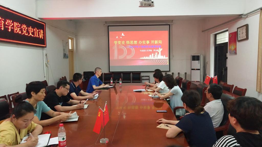 为庆祝中国共产党建党100周年,学习宣传党的百年奋斗历程及党和国家事业的历史性成就,学习贯彻习近平新时代中国特色社会主义思想生动实践,williamhill中文党支部积极开展主题突出、生动鲜活的党史宣传教育。6月30日下午,在学院会议室举行党史宣讲活动,邀请马克思主义学院罗志峰老师到我院进行宣讲。宣讲活动由苗茹副院长主持。