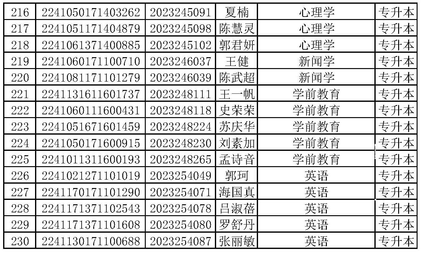 威廉官网中国高等学历继续教育2023级颜景隆等230名新生,经williamhill中文和校外教学点工作人员联系确认后,分属自动放弃入学资格和无法取得联系,以上均属未在规定时间内交费报到注册。