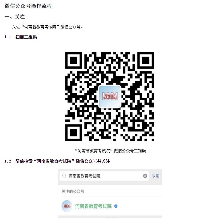 (1)扫描页面河南省教育考试院微信公众号二维码,点击关注。