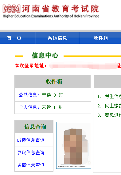 考生访问“河南省教育考试院”网站,登录“河南省成人高校招生考生服务平台”