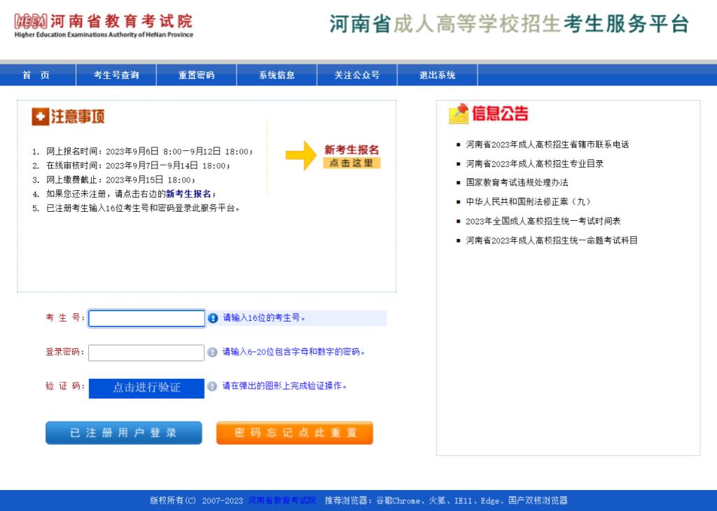 2023年河南省成人高考报名时间为9月6日8:00-12日18:00,报名方式如下: