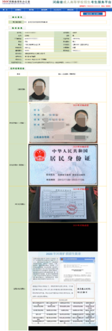 考生核对无误后,点击右上方或者右下方的“提交信息,进入审核”按钮提交信息等待审核。