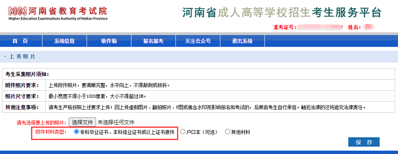 考生需要根据《河南省2023年成人高校招生工作规定》文件规定上传相应的附件材料照片。照片要清晰完整,水平向上,不得颠倒或倾斜。可以采用手机相机中相关的“文档矫正”功能拍照。图像文件规格宽不小于1020像素,每张照片大小不超过1M,可以多次增加上传材料。