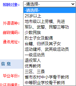 (4)符合照顾条件的考生,请在照顾对象里面选择自己符合的类别。
