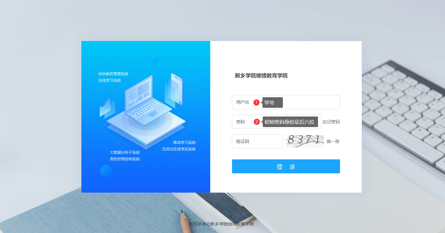 对于首次登陆的学生,默认密码为身份证号后6位,进入考试系统后,可以修改密码。